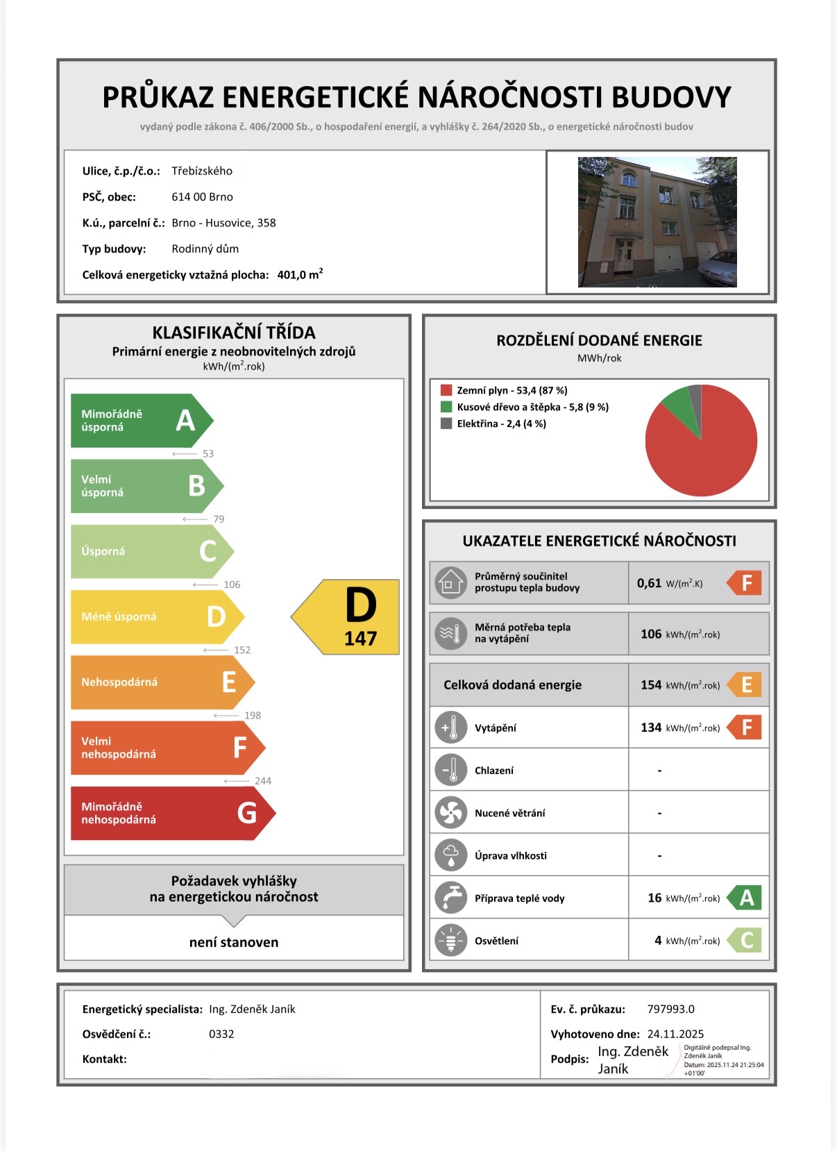 | Ukazatel ENB | 147 kWh/m2 za rok |
