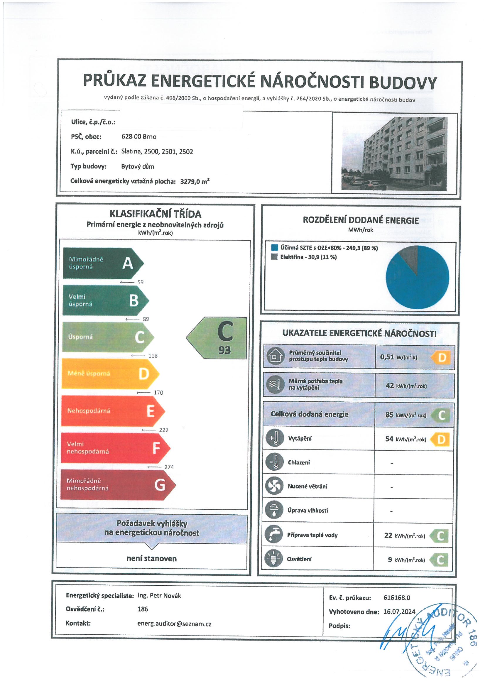 | Ukazatel ENB | 93 kWh/m2 za rok |