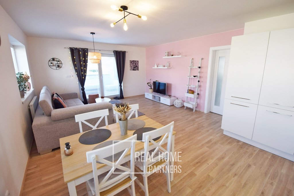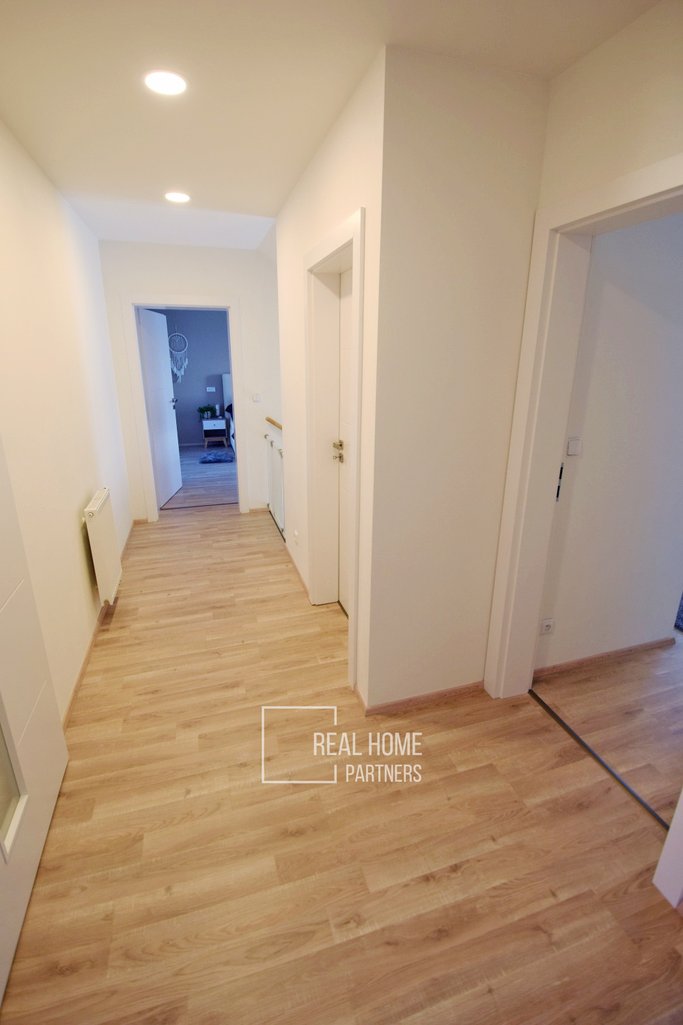 Ve výhradním zastoupení majitele nabízíme k prodeji velice hezký a slunný byt 4+kk s terasou a dvěma parkovacími místy před domem, který se nachází v nově vybudovaném satelitu obce Hajany, vzdálené cca 9 km jižně od Brna. Prostorný byt s celkovou plochou 113 m² včetně terasy je umístěn ve 2.NP novostavby nízkoenergetického cihlového domu kolaudované v roce 2019, ve kterém se nachází pouze dvě samostatné bytové jednotky.