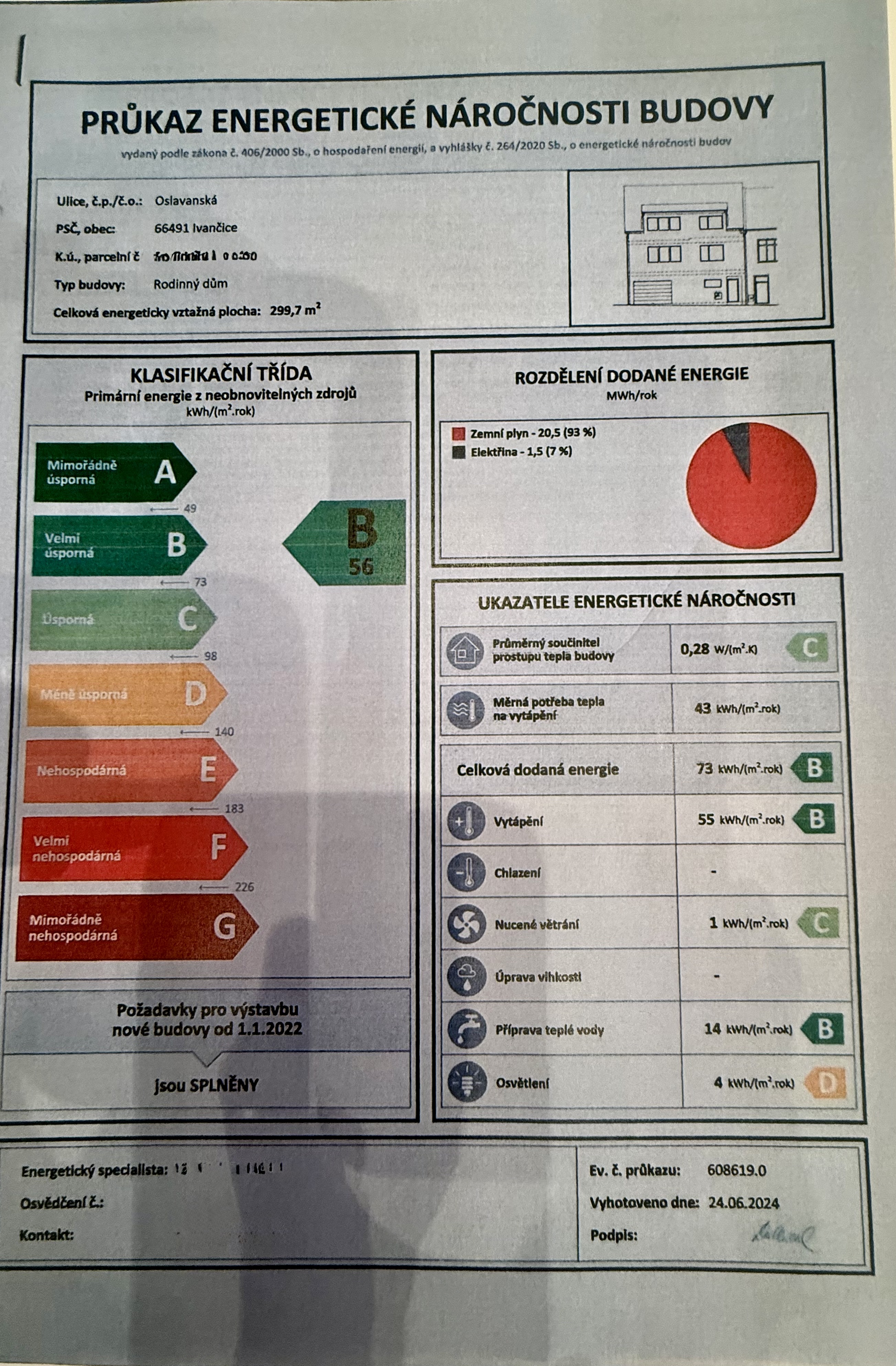 | Ukazatel ENB | 56 kWh/m2 za rok |