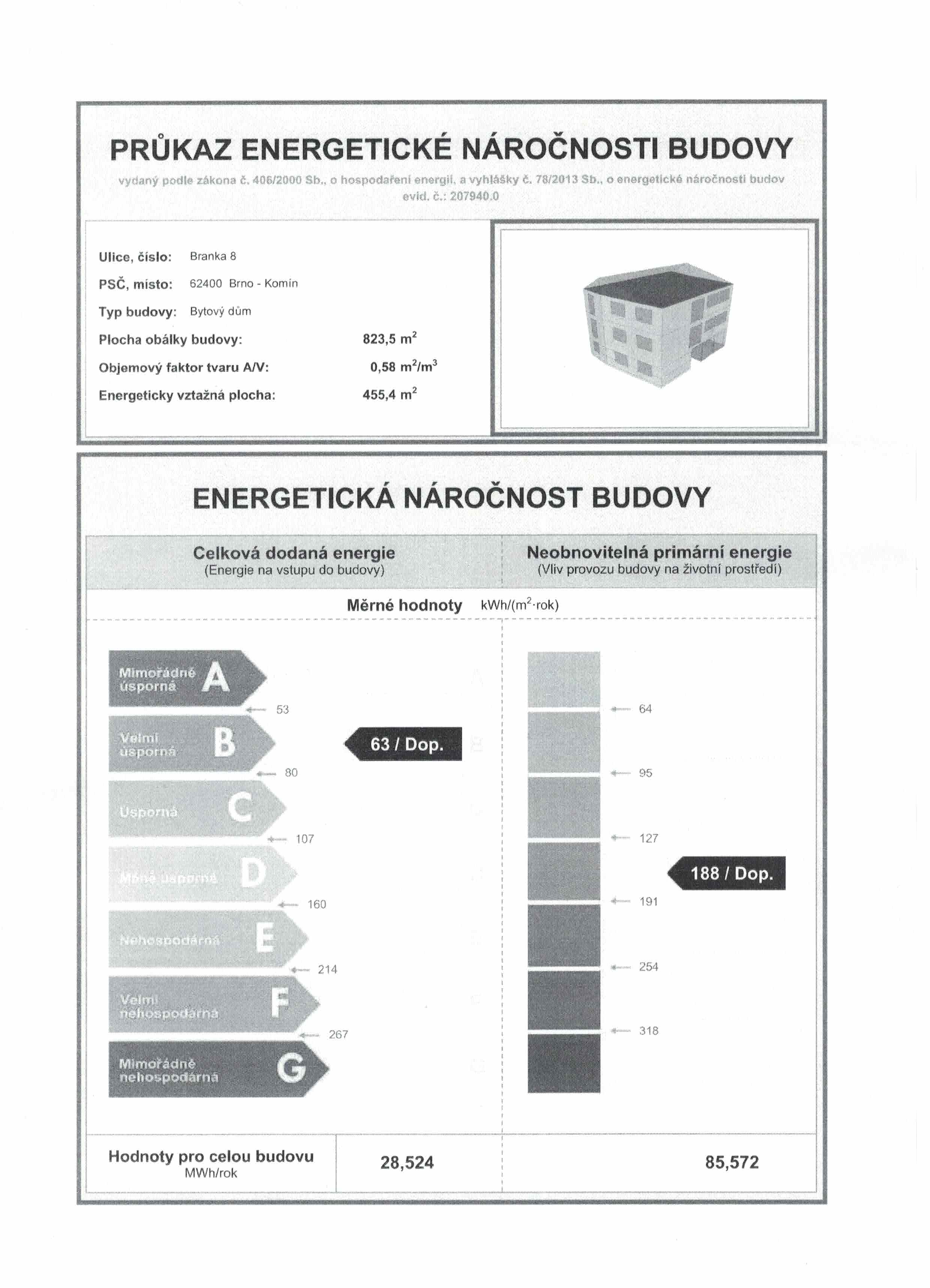 | Ukazatel ENB | 28.52 kWh/m2 za rok |